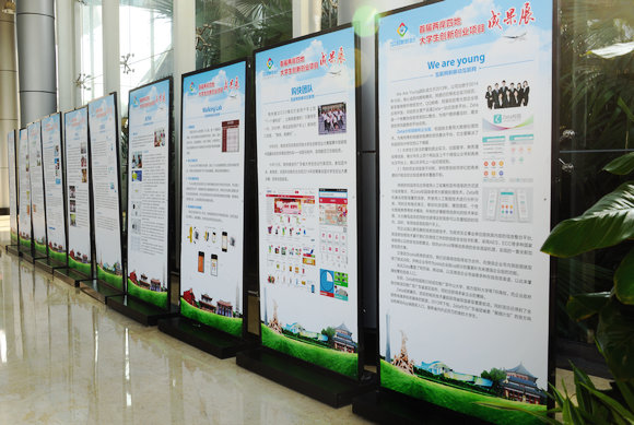 決賽場外,擺放著各參賽創(chuàng)業(yè)團(tuán)隊的產(chǎn)品簡介大板