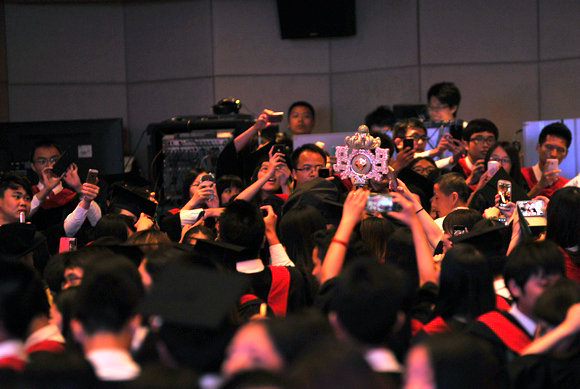 康樂園,梁銶琚堂。在連續的四天時間里,13838名畢業生將逐一登臺,接受來自校長和主禮教授的祝福。在這個交織著笑靨與淚水的畢業季,紅墻綠瓦下,草坪格外青翠,天空也格外明朗,“沉甸甸金燦燦”的學位證書讓畢業生們在前行的道路上,更感到了格外的責任與擔當。