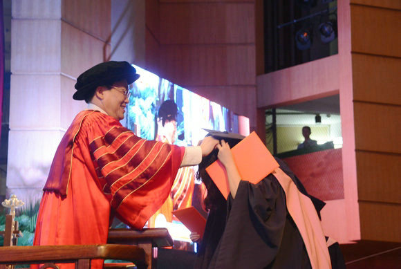 24日,梁銶琚內舉行了四場儀式,中國語言文學系、歷史學系、哲學系、博雅學院、亞太研究院、港澳珠三角研究中心、法學院、教育學院、社會科學教育學院、心理學系、管理學院、傳播與設計學院的畢業生,在莊嚴的典禮中接受洗禮,整裝啟航。