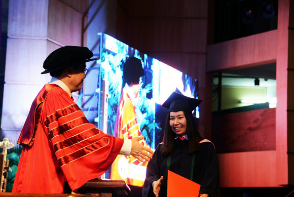 在觀眾席上,有許多父母用殷切的目光注視著主席臺,等待自己的孩子上臺的那一刻,佛山的朱先生就是這眾多父母中的一個。他特意請假趕來中大參加兒子的研究生畢業(yè)典禮,見證兒子和校長握手,完成畢業(yè)儀式。對此,朱先生感到格外自豪。