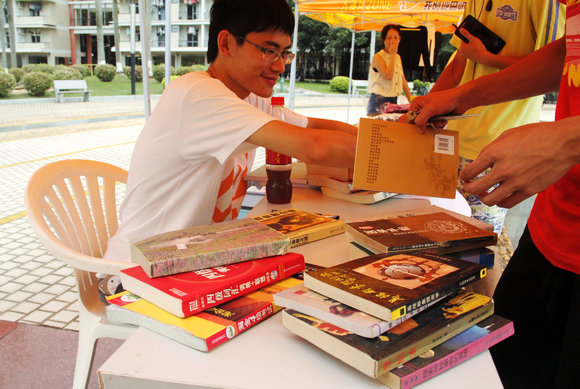 6月20日、21日,在榕園廣場上,熱熱鬧鬧的跳蚤市場增添了一道靚麗的風景。攤位前,擺滿了各式生活用品、書籍文具、飾品玩具等,琳瑯滿目。攤主主要是2014屆畢業生,也有即將回遷廣州校區的同學等。他們的攤位前,吸引了不少同學。