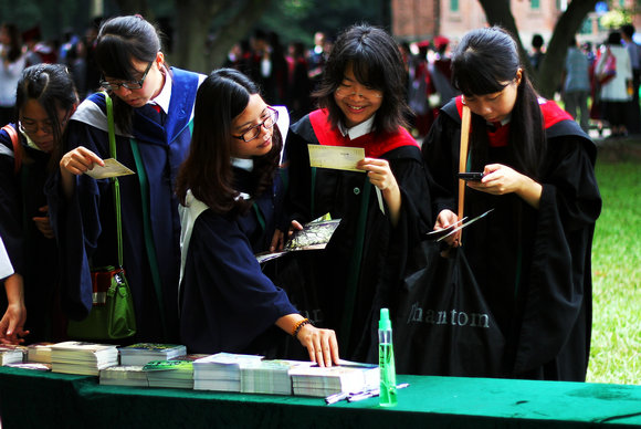 每個U盤上都印有一個獨特編號——畢業生的學號,正面圖案是外國語學院大樓,背面則是手繪的康園北門牌坊,這正是2014屆外國語學院畢業生的畢業禮物,雖然看似普通,但每一份其實都是滿含心意的“私人定制”。