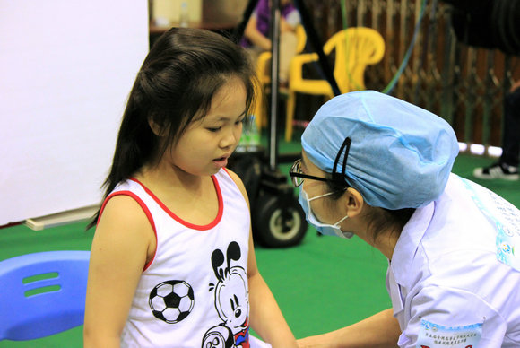 此次比賽也首度使用“標準化病人”和高度仿真的“模擬人”病例。25號上午,賽場內出現了20名可愛的小朋友,他們作為“標準化病人”要配合選手完成比賽。引進真人操作,重點在于考察選手對“患者”的態度和現場應變能力,選手要與小朋友做好現場溝通,安撫他們的情緒,才能更好更快地完成自己的操作。