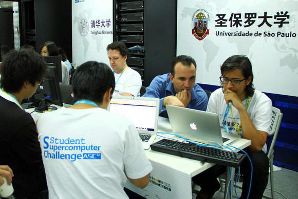 圣保羅州立大學團隊是首次參加國際性的超算競賽,同時也是巴西第一支成立并參加此類超算競賽的隊伍。從2013年10月開始,帶隊老師就在圣保羅州立大學藝術、科學與人文學院進行隊員招募。經過一段時間的選擇與磨合,團隊最終成型,成員皆為大三、大四的學生。他們中有一些已經具有編程工作的實際經驗,這也是圣保羅大學團隊具有競爭優勢的一點。除了參加ASC14外,他們還報名參加今年6月將在德國舉行的國際大學生超級計算機競賽(ISC)。雖然在準備工作上有很大程度的重疊,但是團隊成員們都在非常努力地完成挑戰。對他們而言,參加比賽只是計劃中的一部分,他們更希望借此舉動提升學院在相關領域的專業能力和競爭實力。