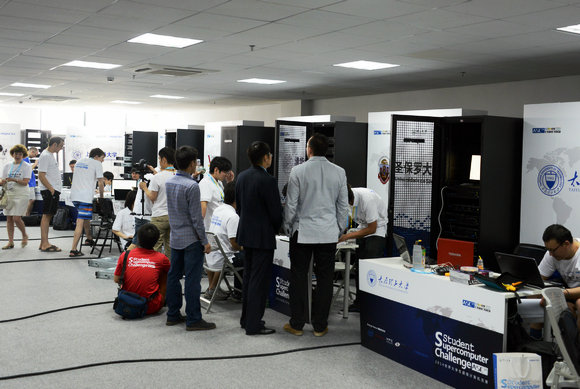 ASC14競賽區(qū),16支參賽隊伍正在進行集群搭建和測試