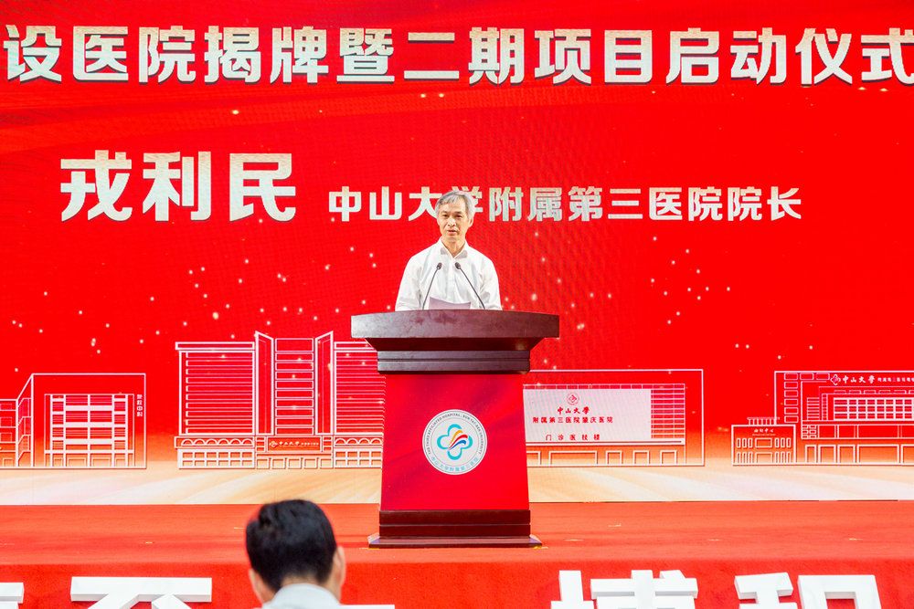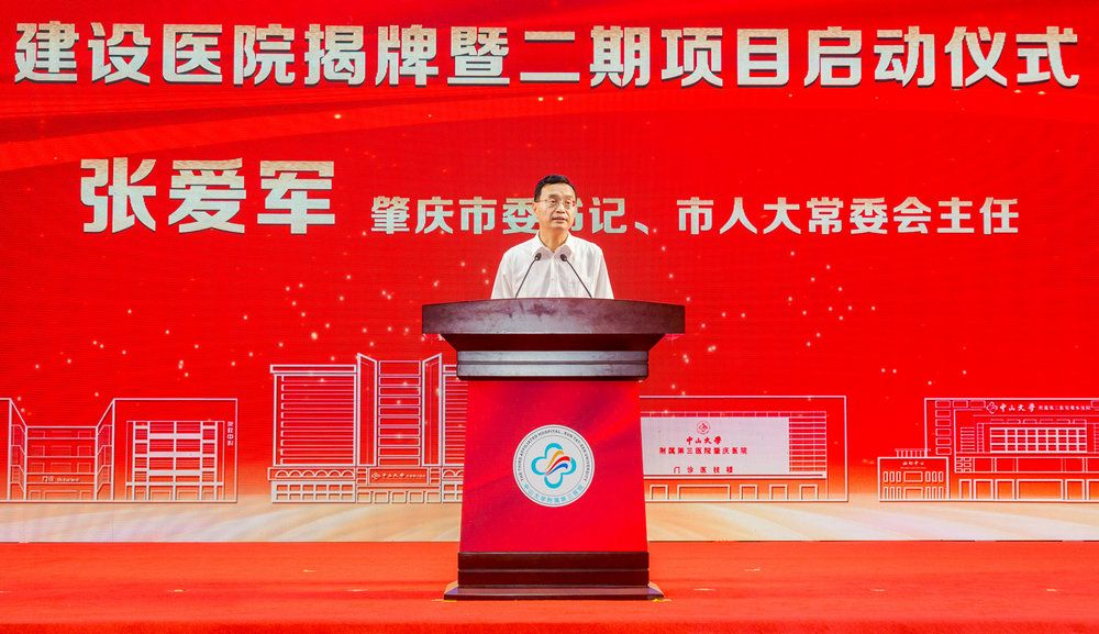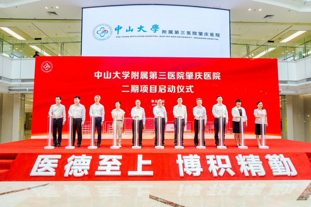 中國科學院院士、中山大學校長高松,肇慶市委書記、市人大常委會主任張愛軍,廣東省發(fā)展和改革委員會一級巡視員黃恕明,廣東省衛(wèi)生健康委員會二級巡視員余德文,肇慶市人民政府副市長何婧,肇慶市政府黨組成員、副市長,肇慶新區(qū)黨工委書記管偉,廣東省發(fā)改委社會發(fā)展和就業(yè)收入分配處處長陳力,肇慶市委秘書長劉志能,鼎湖區(qū)委副書記、區(qū)長,肇慶新區(qū)黨工委委員、管委會副主任梁健梅,中山大學校長辦公室主任楊建林,附屬三院榮譽院長陳規(guī)劃,院長戎利民,黨委書記吳京洪,紀委書記林娟霞,副院長陳燕銘、楊欽泰、黑子清,總會計師楊正云,黨委委員、肇慶醫(yī)院常務副院長衛(wèi)洪波,院長助理邱偉、魏波等出席揭牌儀式。