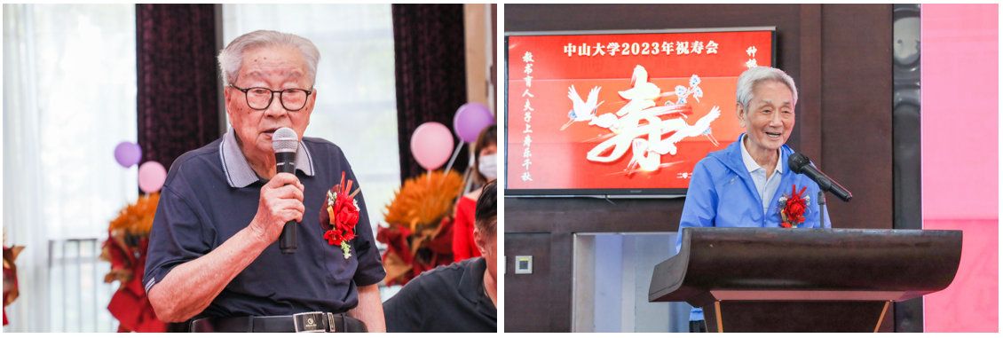左圖:百歲壽星夏書章教授發言 右圖:80歲壽星李興國前輩發言(來源:離退休工作處)