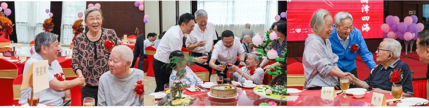 祝壽會現場歡聲笑語,氣氛熱烈,喜慶祥和。老壽星們佩戴紅花,神采奕奕,共敘往事,話說今日。王帆副書記首先向壽星們獻上生日祝福,特別介紹了來到祝壽會現場的5位百歲以上老壽星——將滿105歲的夏書章教授、已滿103歲的李寶娣、百歲老人李哲、宋長棟和龍婉云前輩。