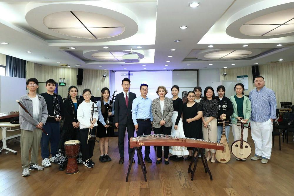 當天上午,博科娃女士一行還到藝術學院觀摩了學生帶來的精彩民樂合奏《敦煌》,及二胡、古箏、琵琶、笙、竹笛等民族樂器的獨奏片段。博科娃女士對于表演贊不絕口,表示從同學們的表演中感受到了多彩的的文化氣息和藝術體驗。藝術學院黨委書記張哲、副院長馮芃芃陪同觀摩。