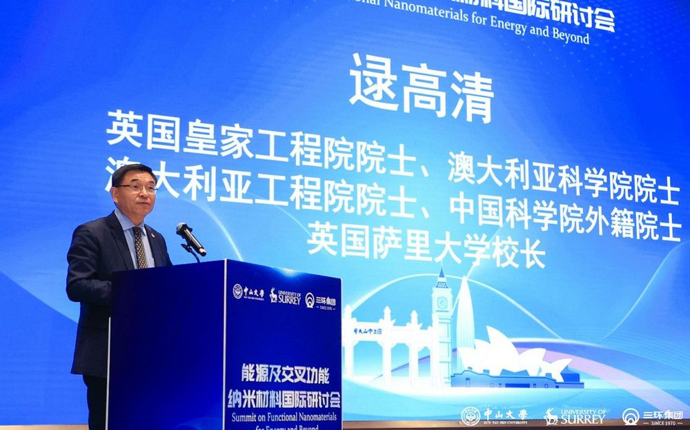中大新聞網訊(通訊員徐鴻昭)群賢畢至,共聚光明。11月6日至9日,能源及交叉功能納米材料國際研討會在光明天安云谷國際會議中心順利舉行。本次會議由深圳市光明區人民政府指導,中山大學主辦,中山大學先進能源學院聯合三環集團、中山大學綠色化學與分子工程研究院和廣東省高等學校功能分子工程基礎研究卓越中心承辦,綠色氫電全國重點實驗室、粵港澳高校能源科學與技術聯盟、中山大學化學學院和中山大學深圳研究院協辦。英國薩里大學校長逯高清院士、中山大學校長高松院士擔任大會主席,中山大學先進能源學院院長姚向東教授擔任大會執行主席。國內外近20名院士和150多名優秀學者應邀參加了會議。