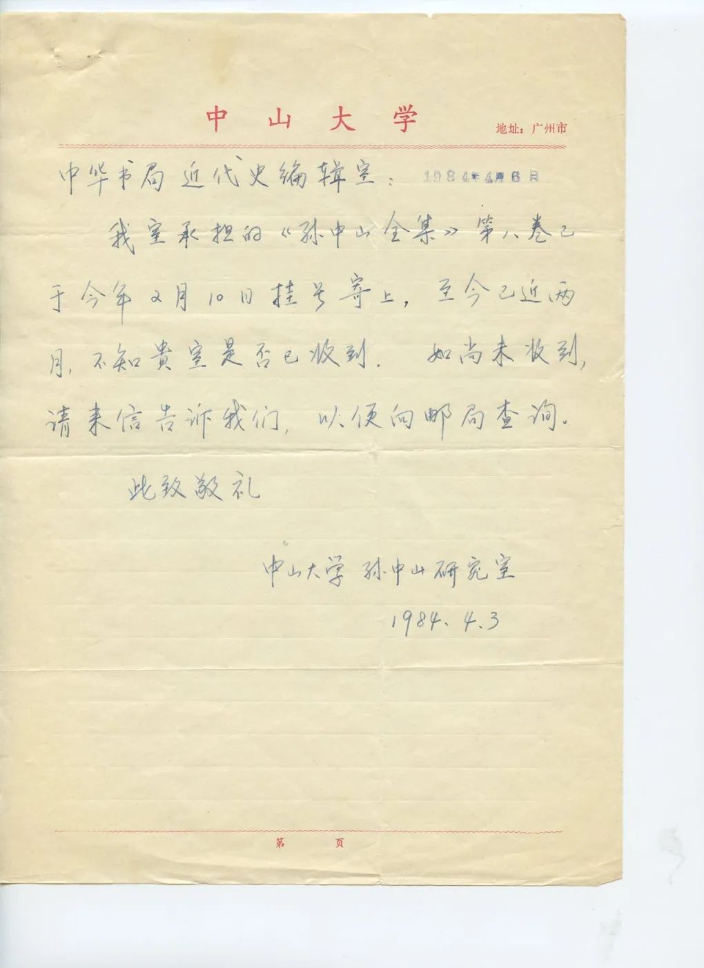 這是中山大學歷史學系參與編輯的《孫中山全集》和與中華書局往來函件,全集于1981-1986年由中華書局陸續出版,后經多次再版,長期是孫中山和近代中國研究的最權威的孫中山文集。