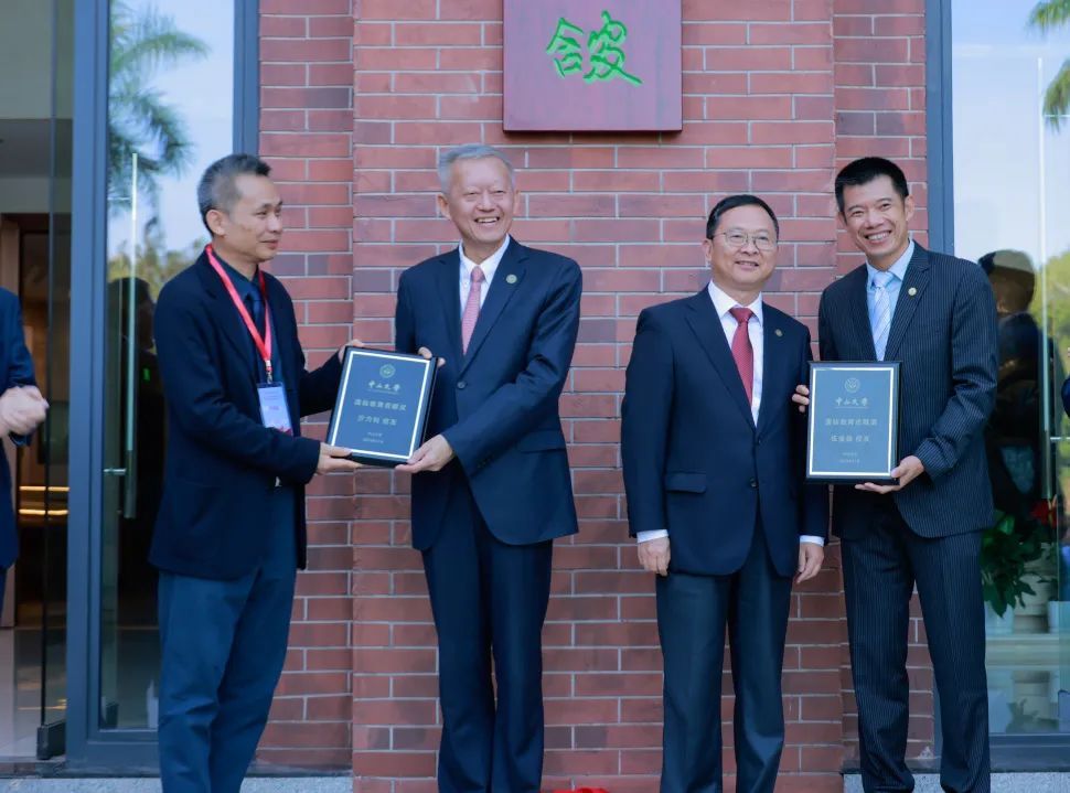 隨后陳春聲書記、高松校長分別向沙力釗先生、伍俊雄先生頒發逸仙教育貢獻獎證書。