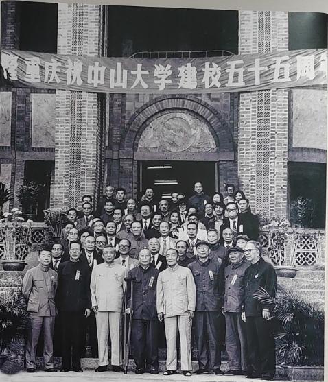 1979年,時任廣東省委第一書記、省長習仲勛(前排左三)和廣東省委第二書記、副省長楊尚昆(前排左五)與參加中山大學建校55周年的中外嘉賓,在中山大學懷士堂前合影