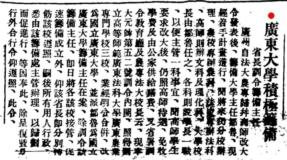 1924年2月19日,上海《民國日報》關于國立廣東大學籌備的報道