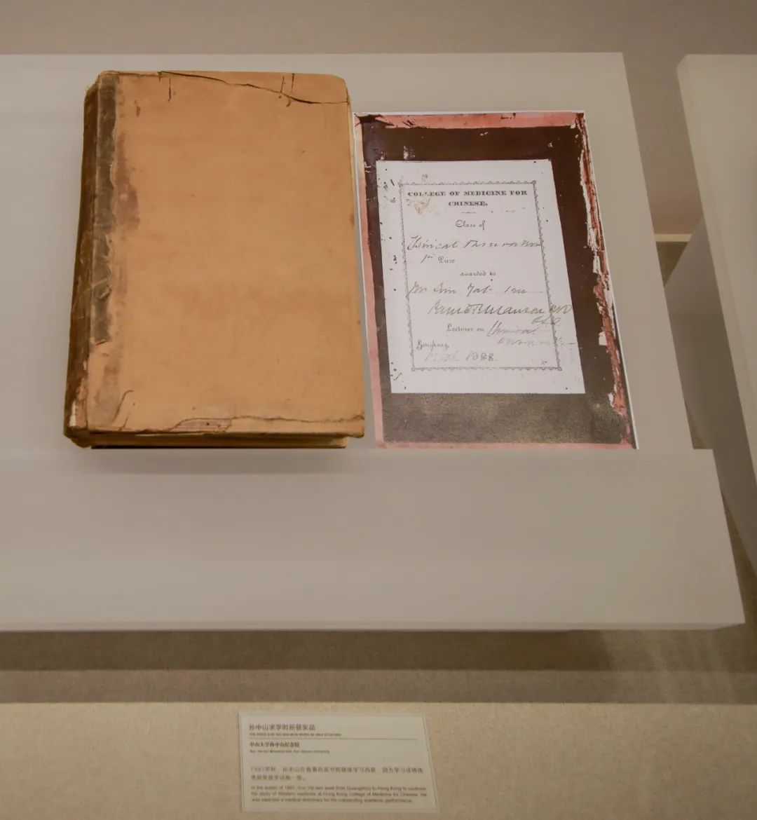 此次展覽展出的書籍、棉袍、詞典,是孫中山在求學時期所使用的實物。1887年秋,孫中山在香港西醫書院繼續學習西醫,因為學習成績優秀獲獎醫學詞典一部。
