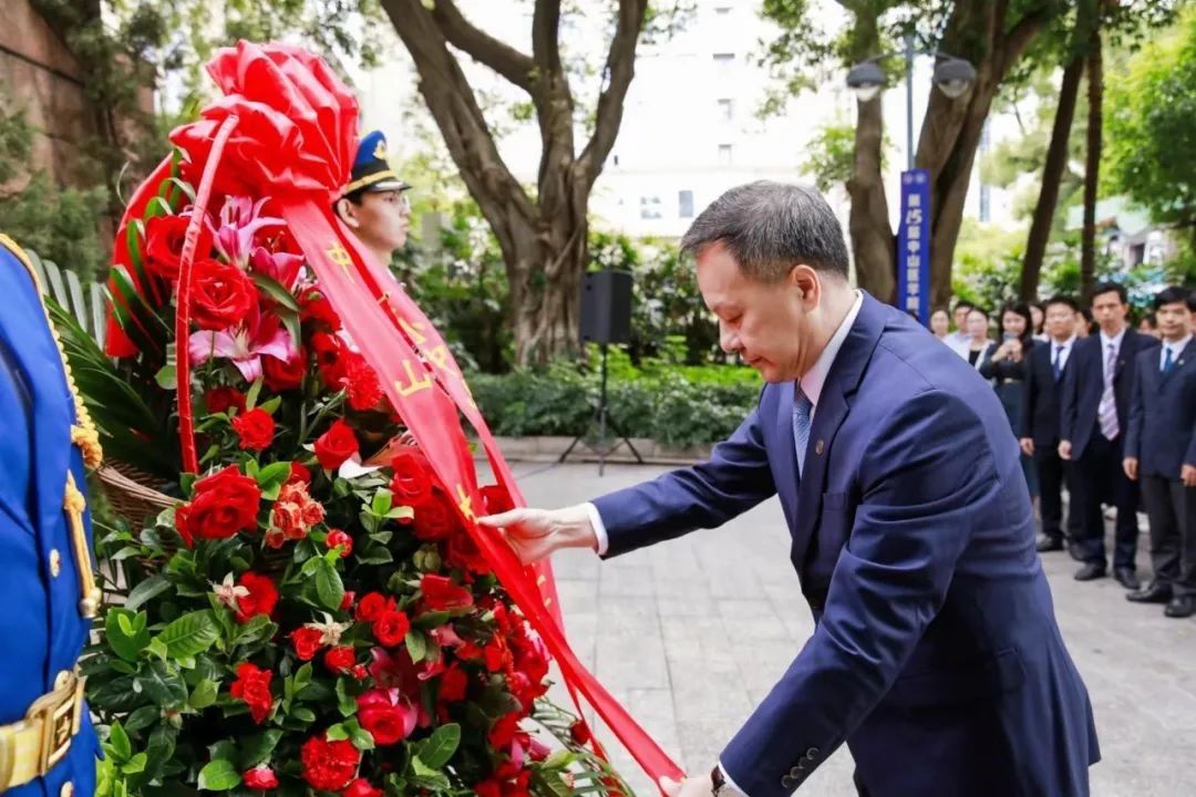肖海鵬常務副校長主禮廣州校區北校園獻花儀式(李煜 攝)