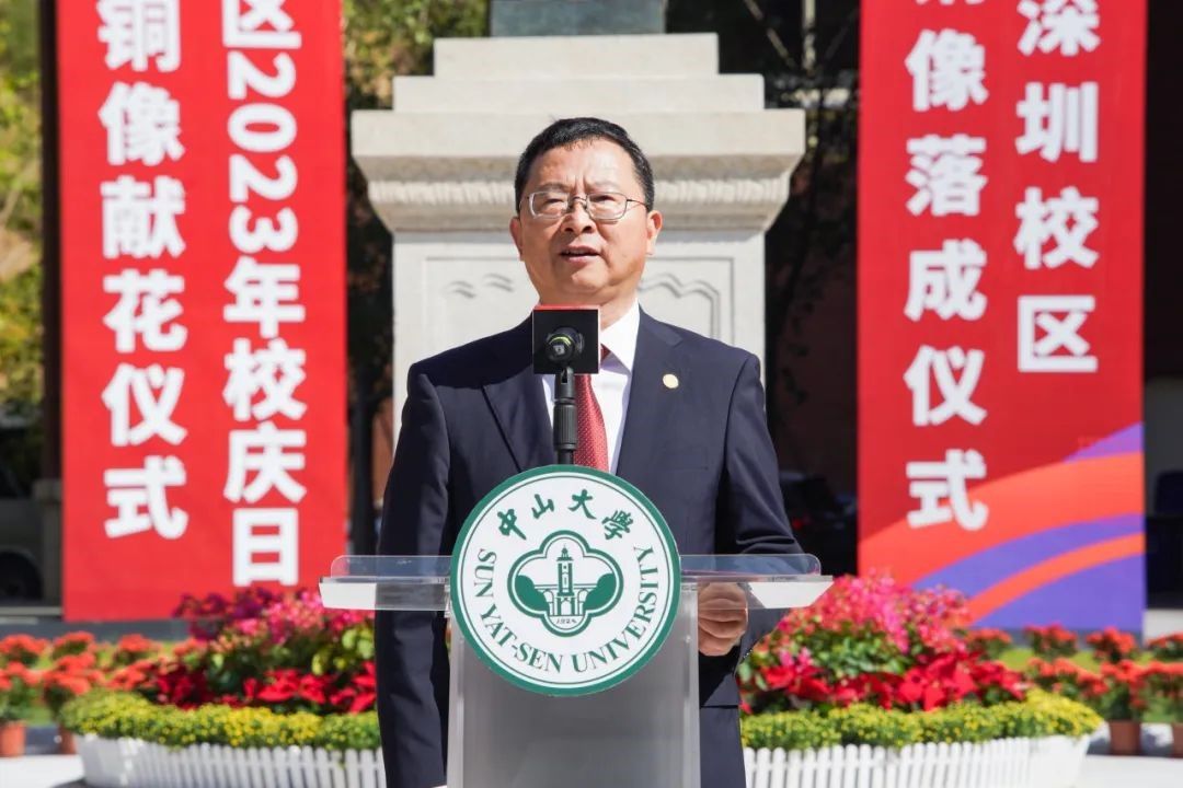 “今天,我們在朝氣蓬勃的深圳校區舉行孫中山先生銅像落成儀式,莊重紀念中國民主革命偉大先驅孫中山先生誕辰157周年、孫中山先生親手創辦中山大學99周年。”孫中山銅像落成儀式上,陳春聲書記在致辭中表示,“設置于每一座校園中的孫中山銅像,是中大精神的象征,既讓大家銘記這是由世紀偉人孫中山先生親手創辦的一所光榮的大學,也讓所有中大人有了一個共同的情感紐帶和精神寄托。”陳春聲書記在致辭中對深圳市和光明區各級領導的支持、對校友始終關注和牽掛著深圳校區和學校的發展建設致以謝意。
