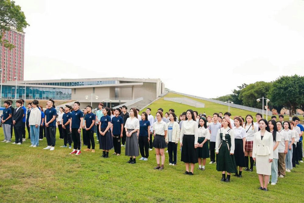 迎著朝陽,廣州校區南校園、北校園、東校園,珠海校區和深圳校區的許多師生自發聚集等待觀禮。