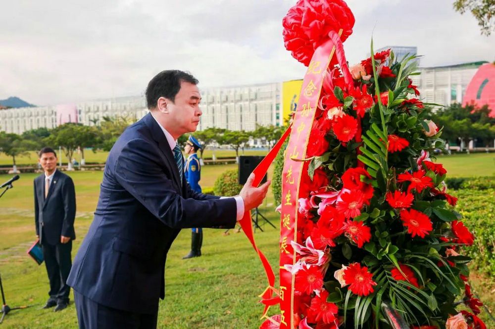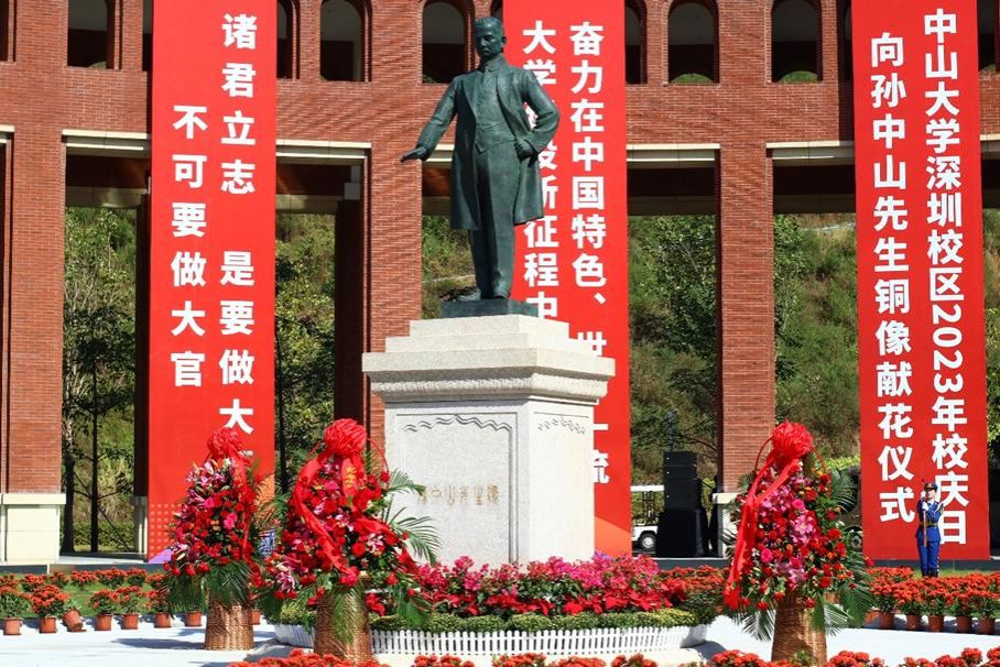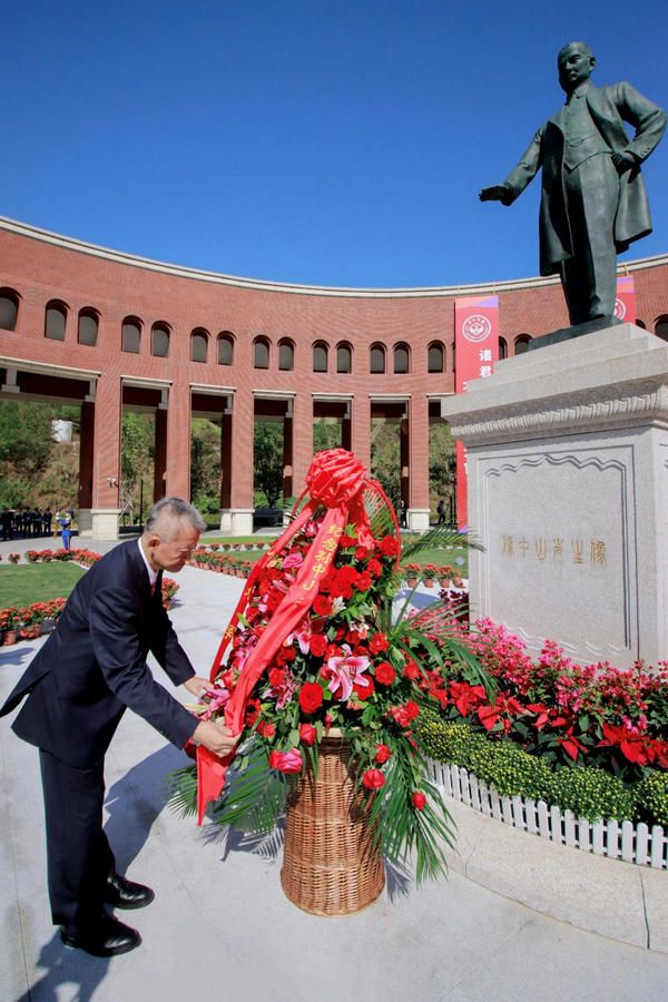 這是中山大學首次在三校區五校園同步舉行校慶日獻花儀式。獻花儀式前,學校在深圳校區舉行了隆重的孫中山先生銅像落成儀式。