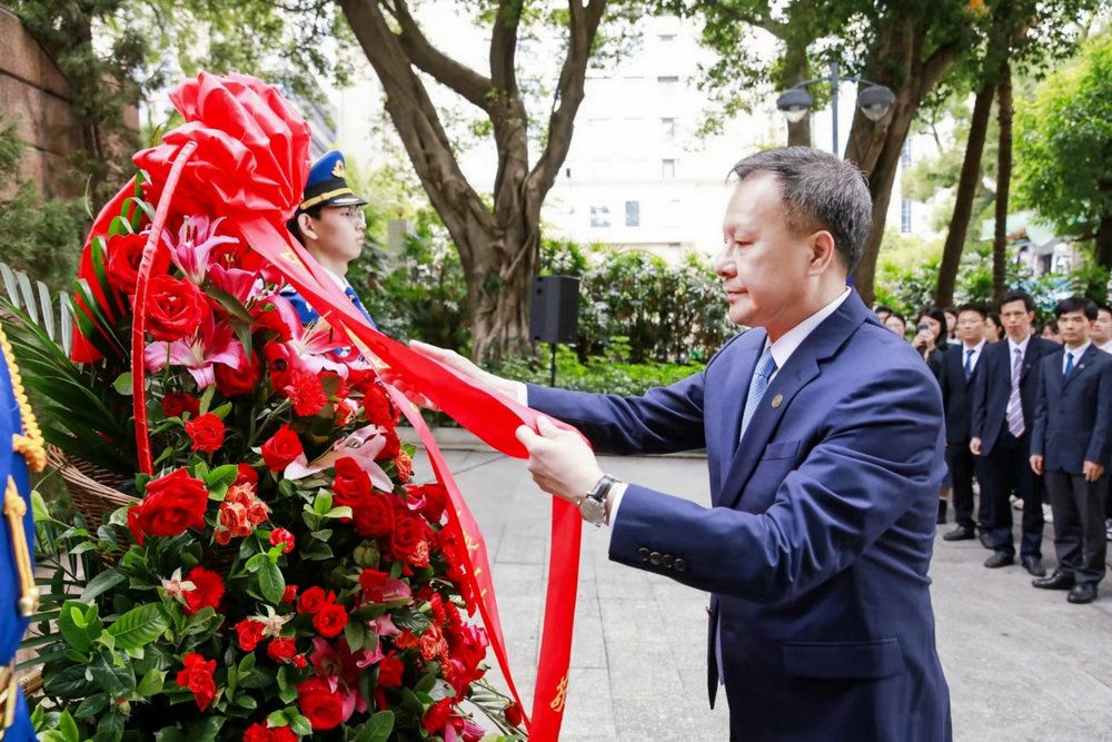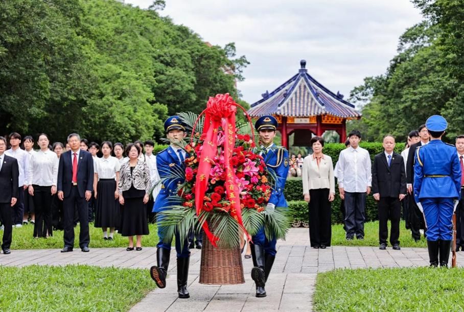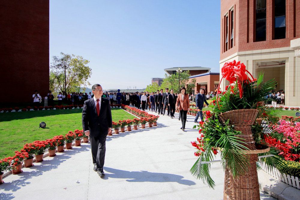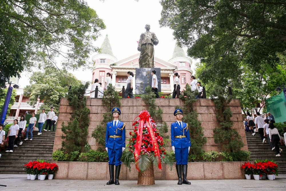 校黨委書記陳春聲,校長高松,校領導肖海鵬、國亞萍、刁振強、劉濟科分別在五個校區(園)主禮獻花儀式,深圳市教育局主任督學蔡茂洲、光明區委書記蔡穎、光明區委常委李興亮、光明區教育局局長黃漢波,副校長蘭平、邰忠智、楊東華、謝湜出席深圳校區儀式,相關職能部門、院系及直附屬單位負責人和師生校友代表參加儀式。
