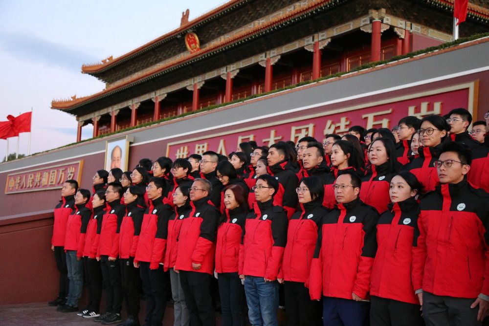校慶日當天清晨,在千里之外,100名中大師生校友在楊清華副校長的帶領下,齊聚北京天安門廣場,見證著五星紅旗與旭日同升,祝福母校中大生日快樂。站在紅旗下,懷揣赤誠心。百名師生校友目光堅定,莊嚴肅穆,祝福祖國繁榮昌盛,祝愿中大再創輝煌。
