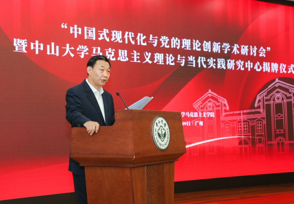 張知干在致辭中指出,在習近平總書記引領我們不斷譜寫馬克思主義中國化時代化新篇章、中國式現(xiàn)代化創(chuàng)造了人類文明新形態(tài)并展現(xiàn)出前所未有的光明前景之時,省社科研究基地“中山大學馬克思主義理論與當代實踐研究中心”成立揭牌,并聚焦“中國式現(xiàn)代化與黨的理論創(chuàng)新”主題舉辦學術研討會,具有重要的現(xiàn)實意義和學術價值。