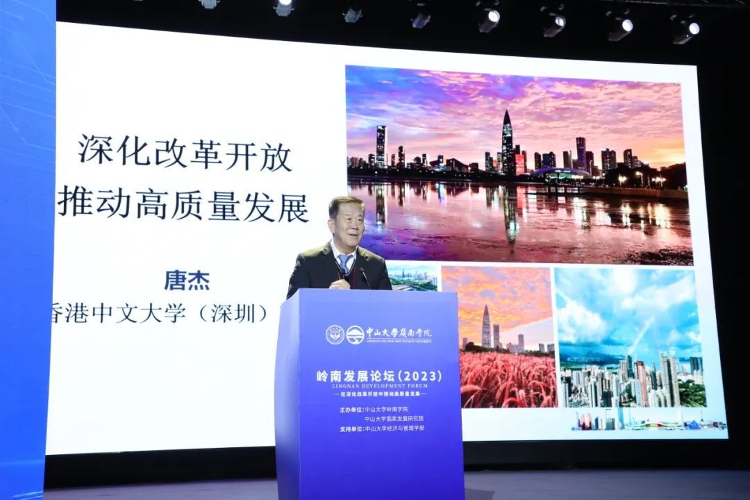 香港中文大學(深圳)理事、深圳市原副市長唐杰教授以《深化改革開放,推動高質量發展》為題發言,分享如何認識和理解高質量發展。唐杰表示,2023年中央經濟工作會議強調,完整準確、全面貫徹新發展理念,加快構建新發展格局,著力推動高質量發展,全面深化改革開放,建立高水平科技自立自強。高質量發展和創新有著極其密切的聯系,創新是高質量發展的不竭動力。