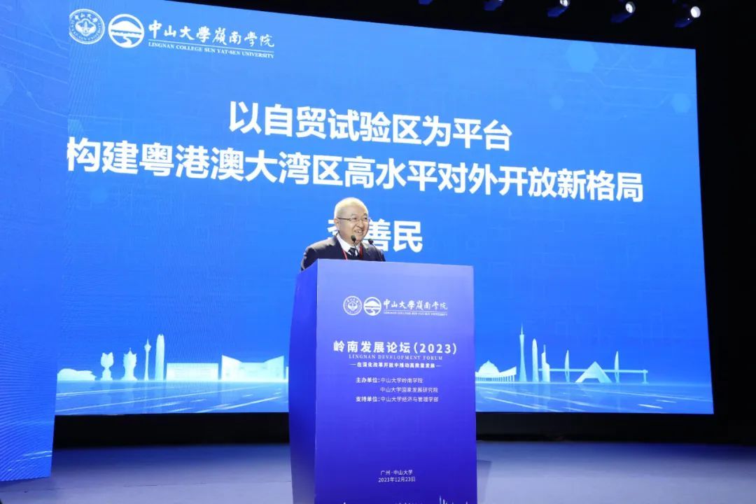 中山大學經濟與管理學部主任、嶺南學院院長李善民教授以《以自貿試驗區為平臺,構建粵港澳大灣區高水平對外開放新格局》為題發言。李善民指出,堅持對外開放是推動高質量發展的重要舉措,而自貿試驗區則是高水平對外開放的重要抓手。李善民建議,粵港澳大灣區發展用好橫琴、前海、南沙三大平臺銜接港澳資源,推動粵港澳三地規則、規制、標準的銜接,充分發揮港澳的“超級聯系人”作用,把三大平臺打造成為“走出去”和“引進來”的首選地,并探索大灣區單一自貿區建設,提升大灣區對外開放平臺的能級。