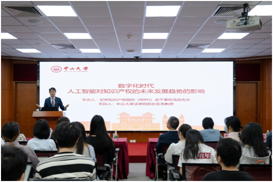 會后,鄧鴻森先生在嶺南堂為學校師生舉辦了一場題為“數字化時代人工智能對知識產權的未來發展趨勢的影響”的講座。他從世界知識產權體系的形成講起,向師生介紹了世界知識產權組織的宗旨和理念,闡述了人工智能技術對知識產權的影響,以及世界知識產權組織的應對舉措。在問答環節,他就學生關心的問題給出了詳盡答復,并鼓勵同學們在知識產權領域繼續學習和探索。