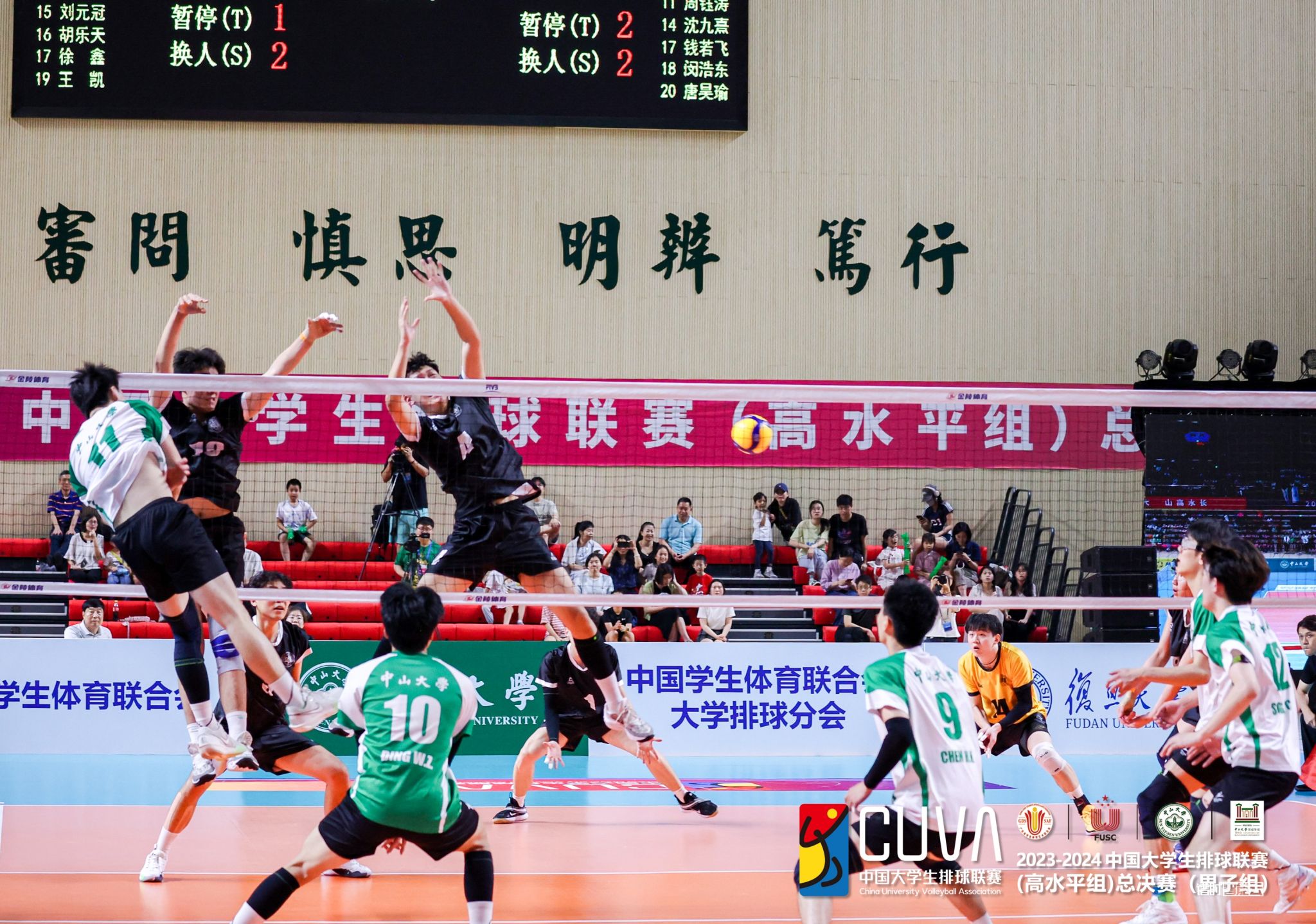 自2024年3月17日起,中山大學(xué)高水平男子排球隊(duì)開始征戰(zhàn)2023-2024中國大學(xué)生排球聯(lián)賽(高水平組),一路高歌猛進(jìn)。在取得南方賽區(qū)冠軍后,中山大學(xué)隊(duì)在5月9日由南方賽區(qū)和北方賽區(qū)的前12名組成的24強(qiáng)賽中披荊斬棘,憑借嫻熟的技戰(zhàn)術(shù)、默契的配合,連勝對(duì)手,最終與復(fù)旦大學(xué)男排進(jìn)入冠亞軍總決賽。6月2日,第一場比賽在復(fù)旦大學(xué)舉行,中山大學(xué)男排以2:3惜敗;6月5日,第二場比賽在中山大學(xué)舉行,中山大學(xué)男排積極調(diào)整心態(tài),以3:0戰(zhàn)勝復(fù)旦大學(xué)男排,并憑借比分優(yōu)勢(shì)成功將第三場比賽留在中山大學(xué)主場。6月8日,中山大學(xué)男排勢(shì)不可擋,憑借出色的技戰(zhàn)術(shù)水平和頑強(qiáng)拼搏的精神,再次以3:0成功拿下比賽。最終中山大學(xué)男排以2:1的總比分奪得2023-2024中國大學(xué)生排球聯(lián)賽高水平組總冠軍。