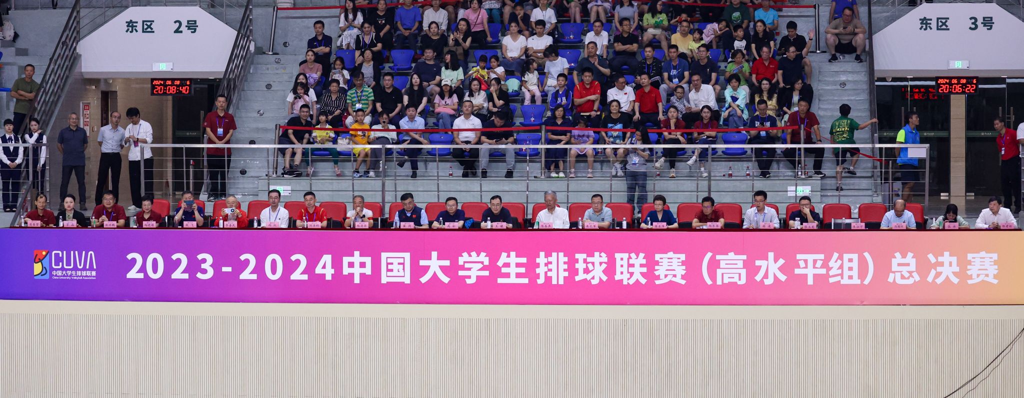 6月8日晚,近6000名師生、校友在中山大學(xué)南校園新體育館觀賽。廣東省委常委、副省長王曦,廣東省教育廳黨組書記、廳長朱孔軍,廣東省體育局黨組書記、局長崔劍等省領(lǐng)導(dǎo)和廳局領(lǐng)導(dǎo),中國學(xué)生體育聯(lián)合會(huì)排球項(xiàng)目主管張玉龍,中國學(xué)生體育聯(lián)合會(huì)大學(xué)排球分會(huì)秘書長殷飛,廣東省學(xué)生體育與藝術(shù)聯(lián)合會(huì)會(huì)長朱征宇等中國學(xué)生體育聯(lián)合會(huì)及省學(xué)體聯(lián)的領(lǐng)導(dǎo),中山大學(xué)黨委書記陳春聲,校長高松,常務(wù)副校長楊清華,黨委副書記國亞萍,副校長劉濟(jì)科、楊東華、鄭躍、謝湜,原副校長李善民,及復(fù)旦大學(xué)、中山大學(xué)相關(guān)部門和院系的負(fù)責(zé)人一同觀看了比賽。