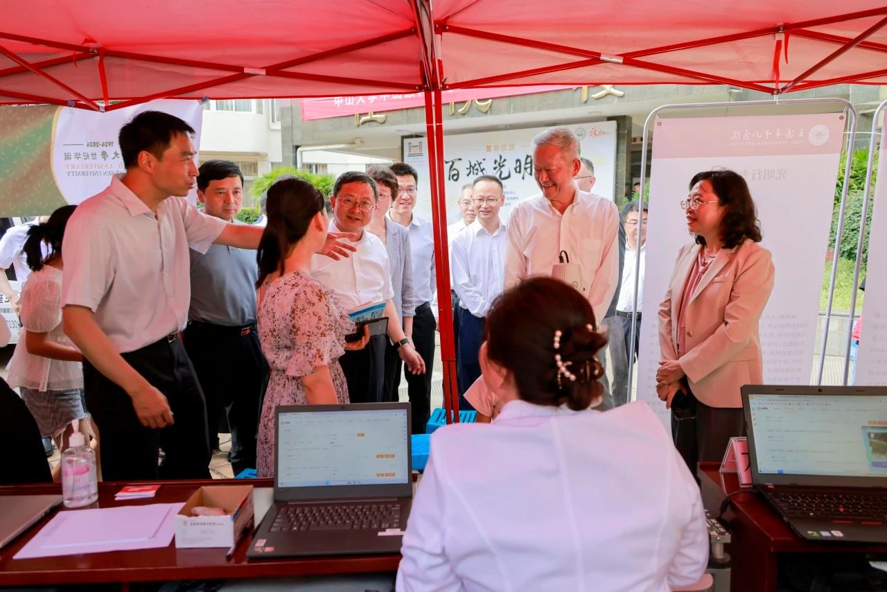 調研期間,“百年校慶·百城光明行”活動正在澄江、鳳慶站開展。“百城光明行”活動從醫、教、研、防多方面聯通所到城市的眼健康醫療服務網絡,將優質醫療資源擴容下沉。陳春聲書記、高松校長一行前往義診現場,看望慰問義診醫生,登“5G智能眼科巡診車”,了解巡診開展情況,對由中山大學中山眼科中心聯合中大各附屬醫院眼科發起的巡診活動表示高度肯定。