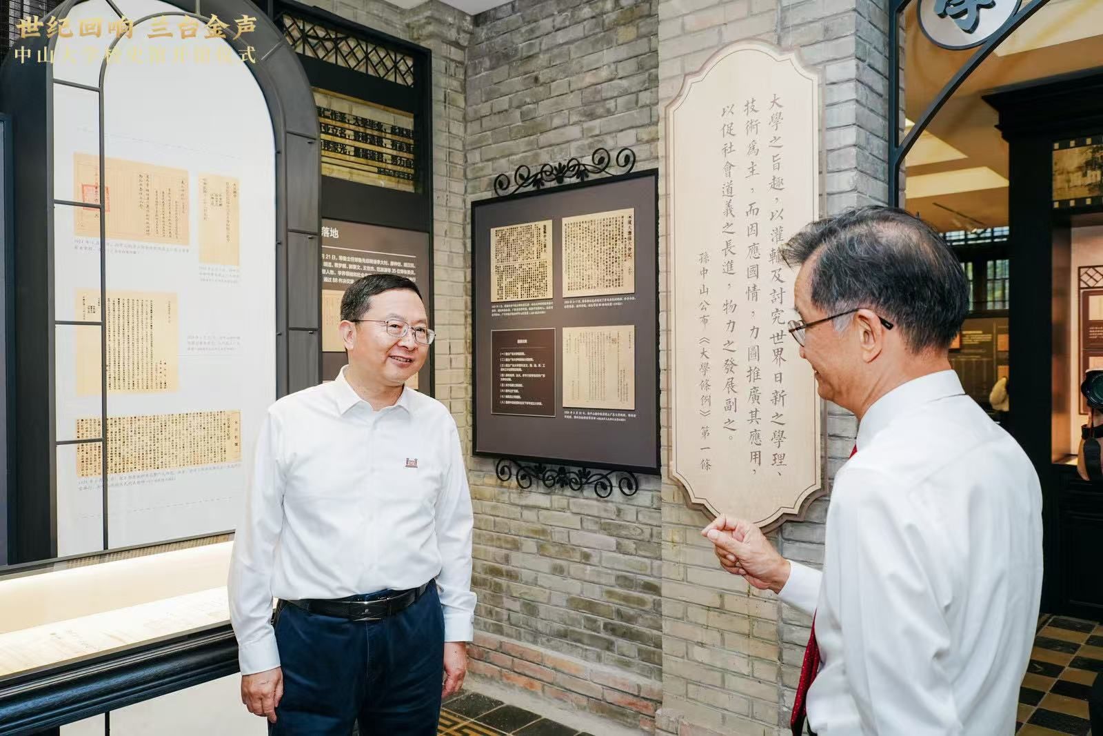 徐俊忠介紹,從孫中山先生頒發的《大學條例》第一條,到中山大學走向“星辰大?!钡陌倌隁v程,中大校史館無不呈現出中大的底色,訴說著中大精神。格蘭堂自建成后,一直都是學校的行政辦公樓。他笑言:“你們可以理解為是校園里的‘司令部’。”近期,中山大學決定將格蘭堂全部騰空,用于建設新校史館。他說,期待校史館能夠成為傳承學校優良學品與學風的精神圣地,也成為青年學生研學的基地。