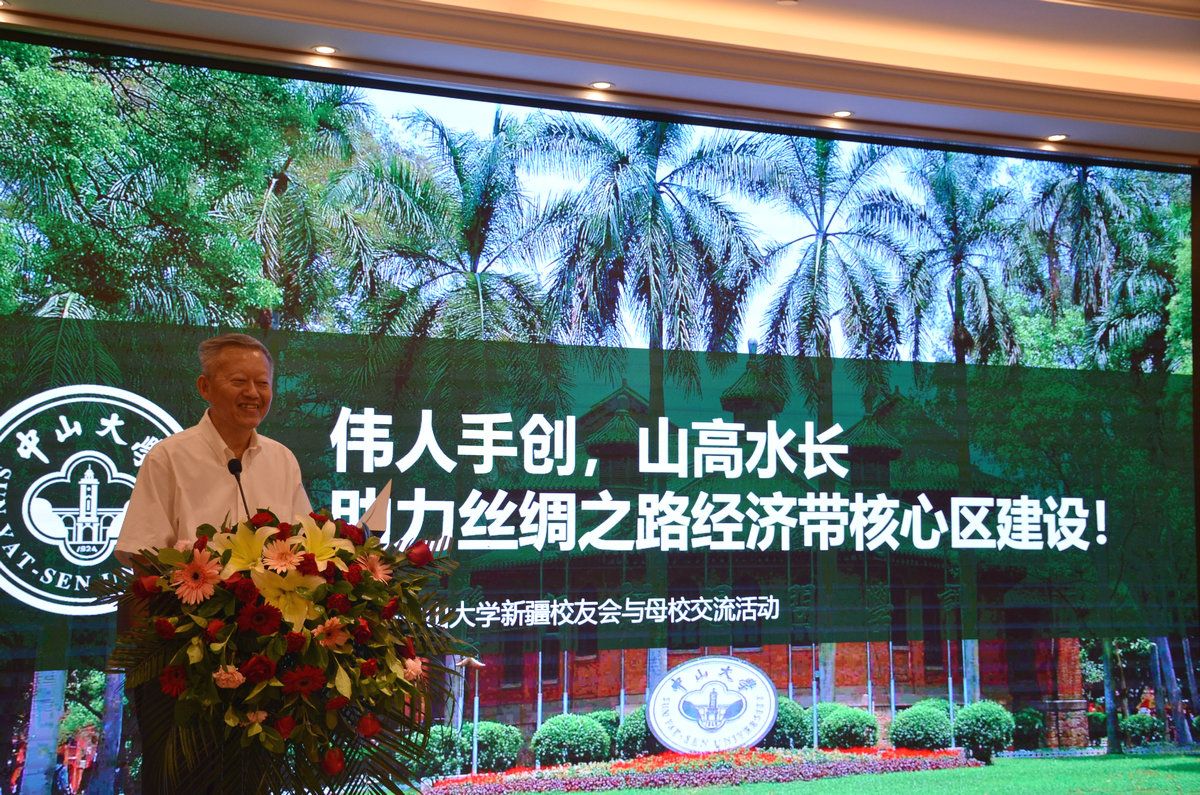 中山大學黨委書記陳春聲教授作總結講話。陳書記向廣大積極響應國家號召,扎根祖國邊疆、在廣闊新疆大地揮灑青春和熱血的校友及援疆干部們表示崇高的敬意和親切的慰問,向關心支持中山大學發展的新疆各級領導和各界人士致以衷心感謝。陳書記強調,未來將會有越來越多的青年學子扎根新疆,為建設美好新疆貢獻青春力量。校友是學校最靚麗的名片,也是學校極為珍視的寶貴財富。學校今日的聲譽和影響力離不開廣大校友的拼搏和奮斗。他衷心希望新疆校友會充分發揮好服務校友、服務母校、服務新疆、服務國家的積極作用,與母校攜手共進,為母校的發展和新疆的穩定繁榮貢獻更多的力量。