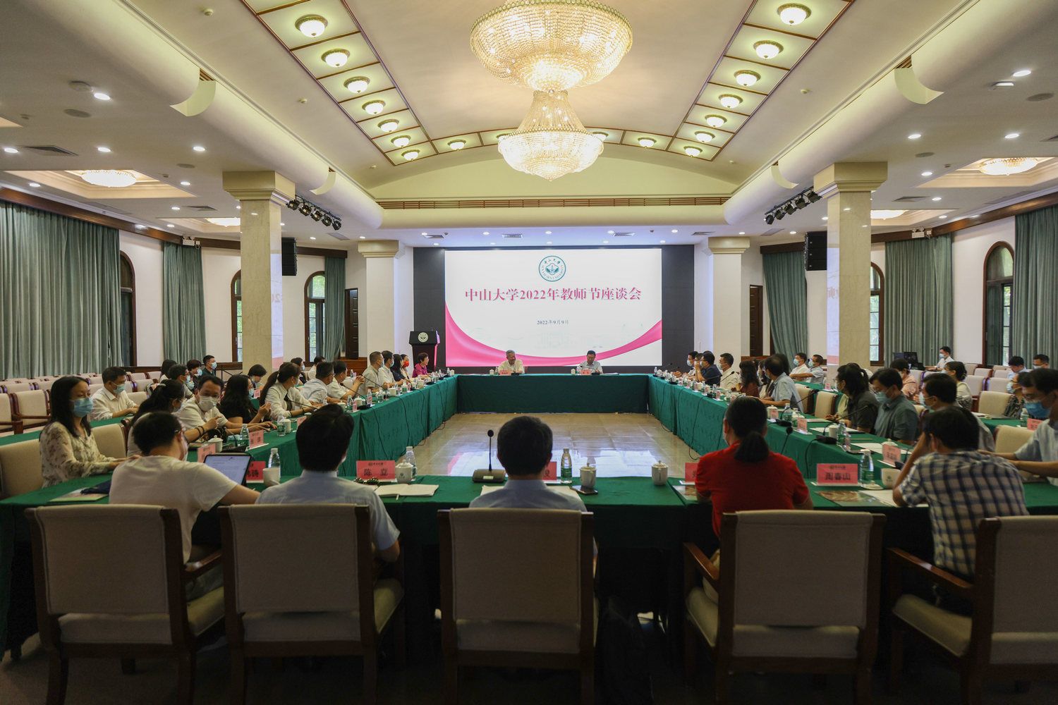 中大新聞網廣州9月10日電(記者孫琛、熊予、樊雨瑤)值此教師節與中秋節來臨之際,9月9日上午,我校在廣州校區南校園懷士堂舉行2022年教師節座談會。圍繞“迎接黨的二十大,培根鑄魂育新人”這一主題,與會代表就心懷“國之大者”,勇擔培育時代新人的歷史使命展開了熱烈討論,并在會前集體觀看了《習近平的教師情》專題片。校黨委書記陳春聲教授,校黨委副書記、校長高松院士出席教師節座談會。來自各院系、附屬醫院的30多位教師代表和學校相關職能部門負責人參加活動。會議由校黨委副書記國亞萍主持。