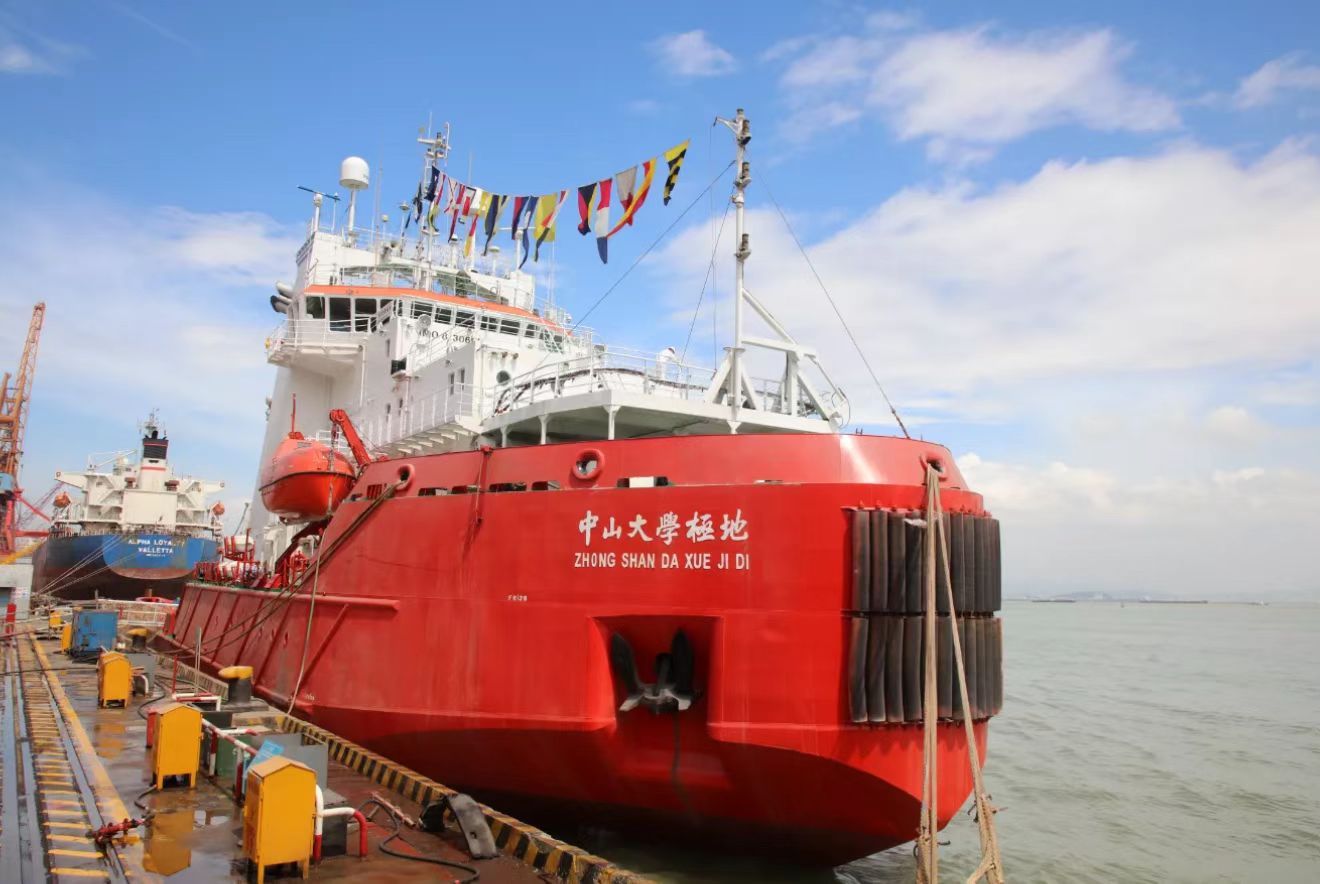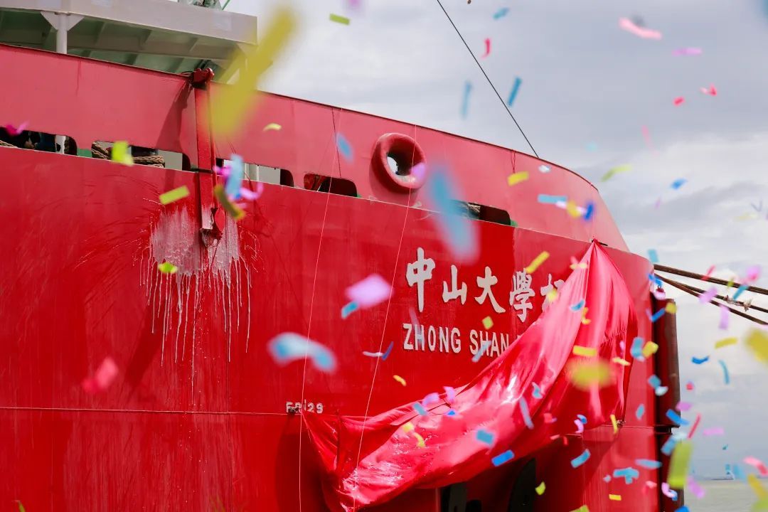 9月30日,“中山大學極地”號極地破冰多用途船命名儀式在廣州文沖船舶修造有限公司碼頭舉行。中山大學黨委書記陳春聲教授,中國科學院院士、中山大學校長高松教授一同為該船點睛,高松校長為“中山大學極地”號正式命名,行擲瓶禮,希望她“承擔起面向世界科技前沿的重擔,承托起人類極地海洋的求索夢想!破冰遠航、天空海闊,順遂平安!”