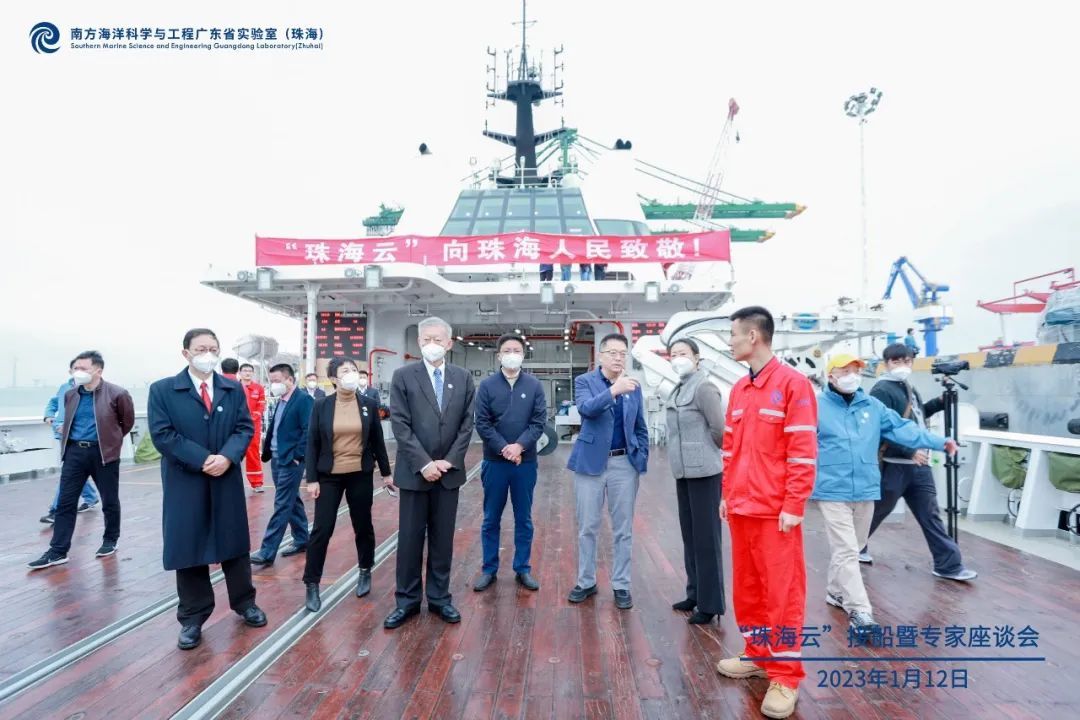 接船活動后,全體嘉賓登船參觀,對“珠海云”先進的功能定位、新穎的外觀設計、自主可控的技術裝備以及舒適良好的工作生活環境給予了高度評價。在隨后舉行的座談會上,各位專家深入交流討論,對下一步更好發揮“珠海云”在海洋科考領域的創新應用提出了建設性意見。