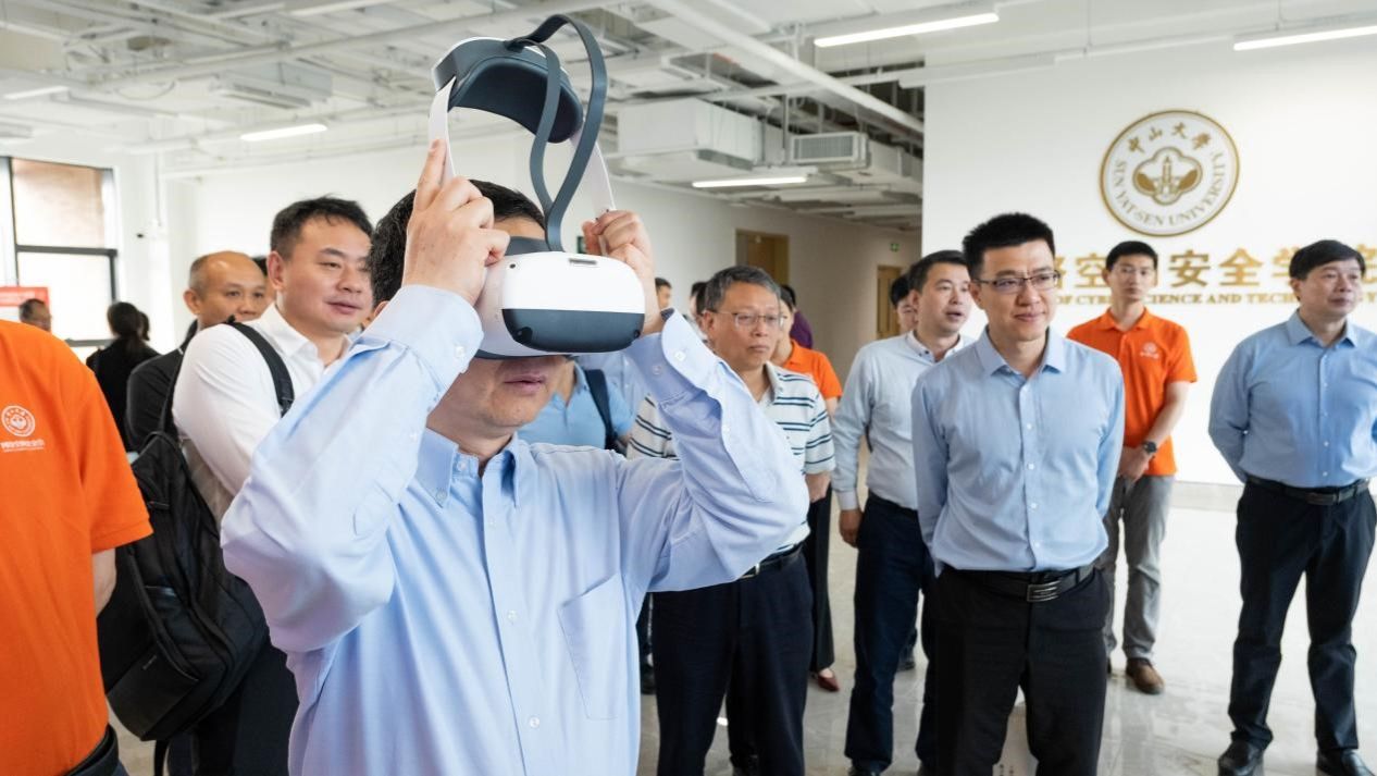 4月13日上午,高松校長(zhǎng)一行調(diào)研網(wǎng)絡(luò)空間安全學(xué)院實(shí)驗(yàn)室建設(shè)情況。(黨委宣傳部 伍鈞浩 攝)
