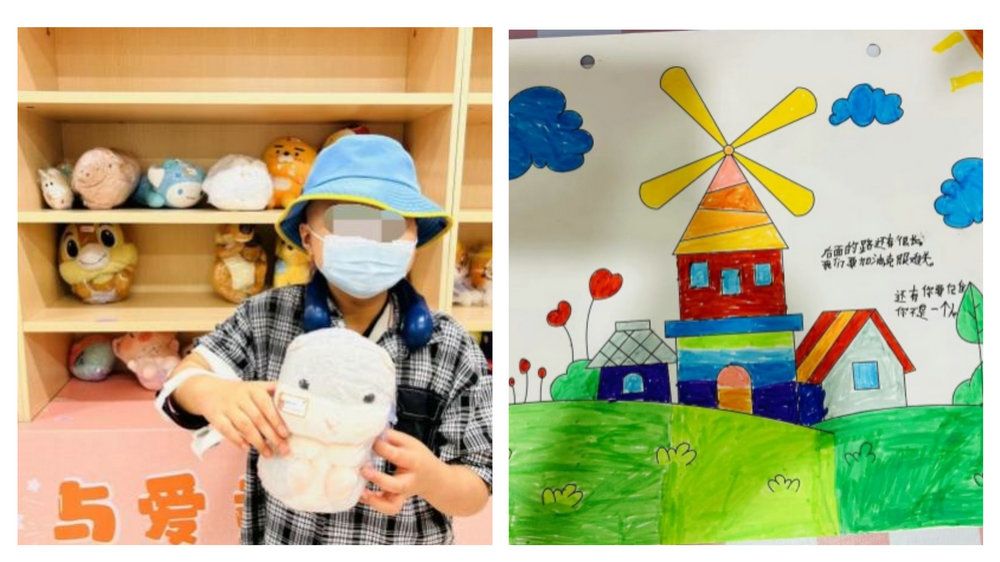 在日間化療中心有一間魔法“加油小屋”,大家可以在里面寫下祝福,靜待花開。在六一國際兒童節來臨之際,這間魔法“加油小屋”——“童心妙妙屋”舉行了送你一朵小紅花六一關愛活動——一畫一愛,一童一夢,與愛同行。