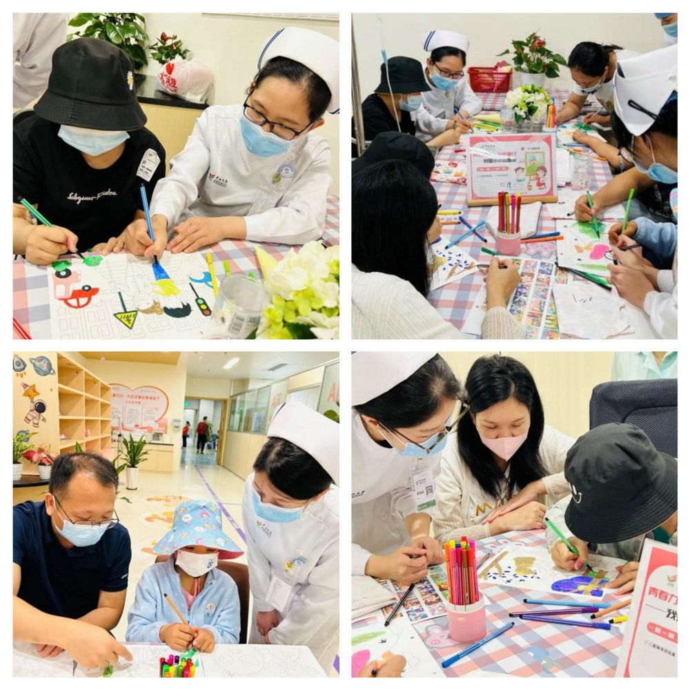 “童心妙妙屋”項目用心守護用愛呵護,為小天使和家長們帶來了“我是小小繪畫家”的“超解壓”填色游戲。五彩的畫筆在小天使們的手中,化為跳動的音符和護士姐姐們訴說了治療時最想說的話,和家長們一起繪畫著內心的“繽紛世界”。