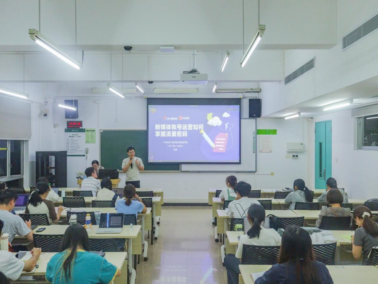 作為廣東網(wǎng)絡(luò)廣播電視臺(tái)首席運(yùn)營(yíng)官、廣東廣電MCN負(fù)責(zé)人,柯鑫在現(xiàn)場(chǎng)結(jié)合廣東廣播電視臺(tái)融媒體渠道傳播運(yùn)營(yíng)和新媒體品牌打造的實(shí)踐經(jīng)驗(yàn),講述了如何在保持主流媒體調(diào)性的同時(shí),能夠掌握流量密碼,提升新聞?shì)浾摰膫鞑チΑ⒂绊懥Α4送猓€向師生傳授輿情處理、視頻制作、抖音賬號(hào)打造、微博運(yùn)營(yíng)技巧等方面的融媒體實(shí)戰(zhàn)技能。