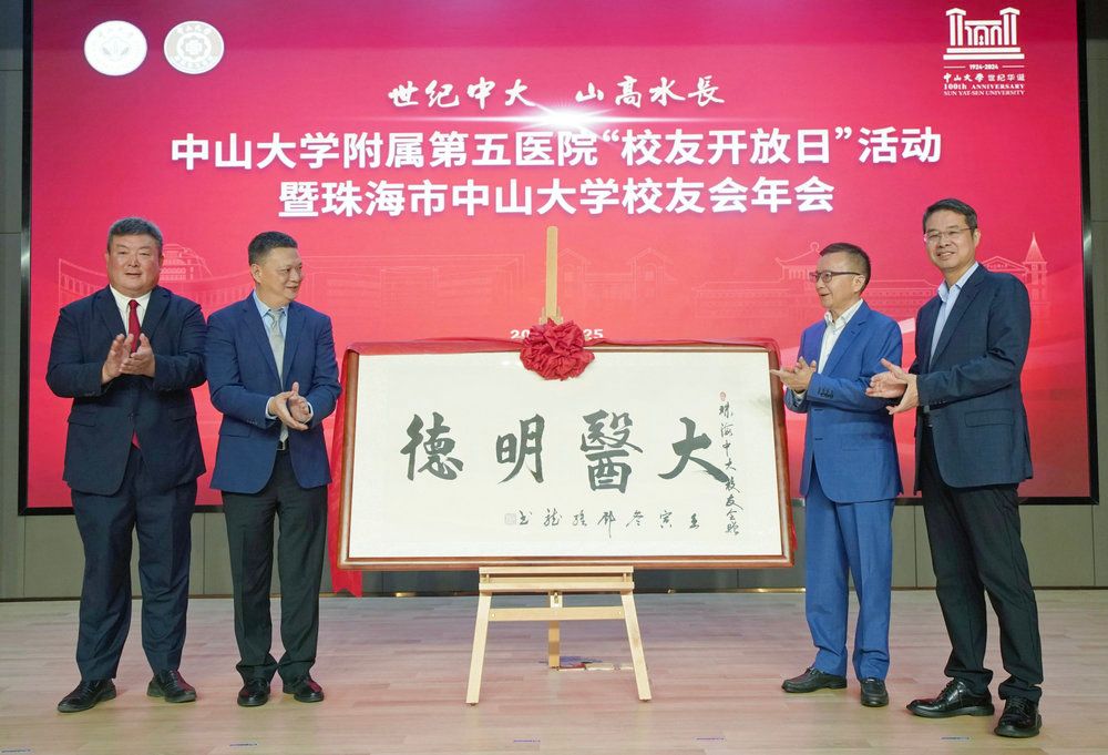 隨后,珠海市中山大學校友會向附屬第五醫院贈送了“大醫明德”書法作品。