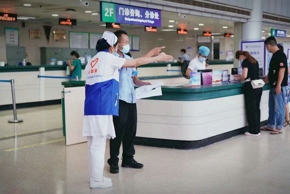 院內(nèi)志愿者服務(wù)。醫(yī)院團委積極搭建導(dǎo)診志愿崗、門診晨班志愿崗、圖書館志愿崗等志愿服務(wù)平臺為群眾提供導(dǎo)醫(yī)導(dǎo)診、健康咨詢等服務(wù),其中,門診晨班志愿崗于2018年發(fā)起,以“門診優(yōu)質(zhì)服務(wù) 你我共參與”為主題,參與志愿服務(wù)的師生員工利用自己上班前半小時,幫助候診患者使用自助掛號機,主動發(fā)現(xiàn)需要完善的流程細節(jié)及時反饋給相關(guān)科室。