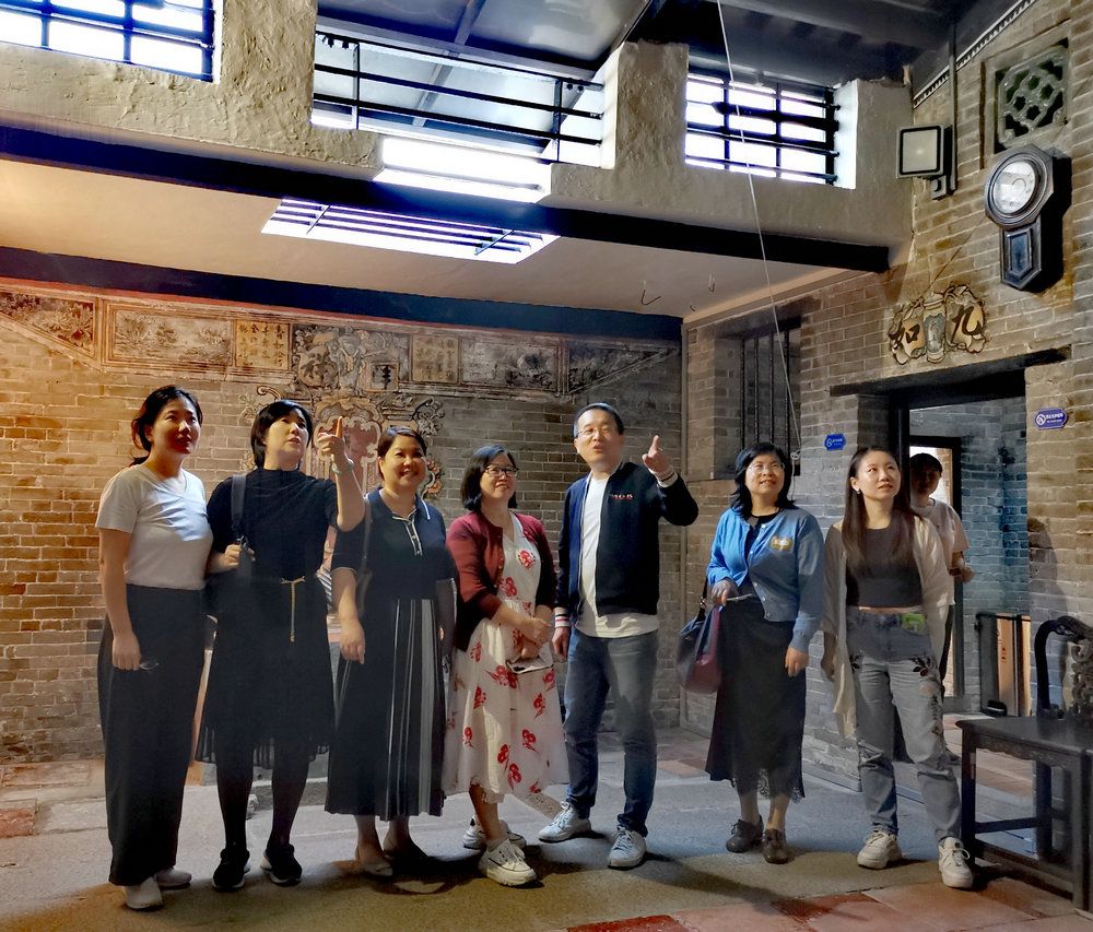 基層委一行首先參觀了臺(tái)山市水步鎮(zhèn)草坪里古村落,基層委秘書長劉立欣介紹了該村近年來落實(shí)鄉(xiāng)村振興政策。通過臺(tái)山、深圳、香港等地青年的帶動(dòng),挖掘本村歷史名人故事,改善基礎(chǔ)設(shè)施,活化利用嶺南風(fēng)格古建筑,打造餐飲、文創(chuàng)等特色文旅項(xiàng)目,從“空心村”變成了“網(wǎng)紅村”,并于2020年獲得“全國鄉(xiāng)村旅游示范村”稱號(hào)。劉立欣還通過無人機(jī)拍攝向大家講解了嶺南水鄉(xiāng)布局、村落形態(tài)演變以及嶺南建筑特色等相關(guān)領(lǐng)域的知識(shí)。