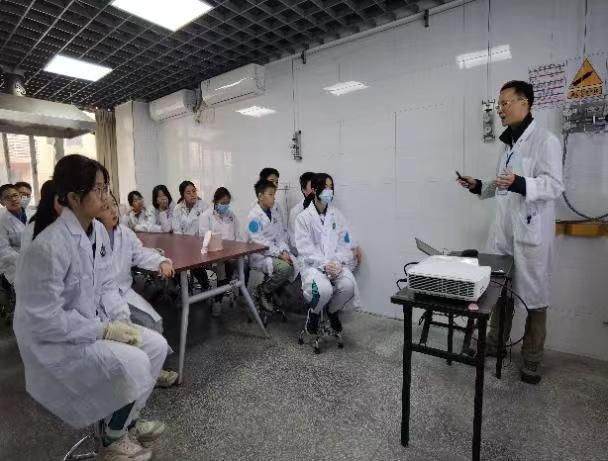 科普實(shí)踐課堂分為集中講解、實(shí)驗(yàn)操作體驗(yàn)、總結(jié)座談、頒發(fā)證書四個(gè)環(huán)節(jié)。實(shí)驗(yàn)教學(xué)中心林志強(qiáng)老師以“什么是化學(xué)“的問題入手,通過視頻、圖片等形象生動(dòng)地為學(xué)生們講解化學(xué)實(shí)驗(yàn)與安全相關(guān)基礎(chǔ)知識(shí),并與學(xué)生們展開了積極熱烈的問答互動(dòng)。