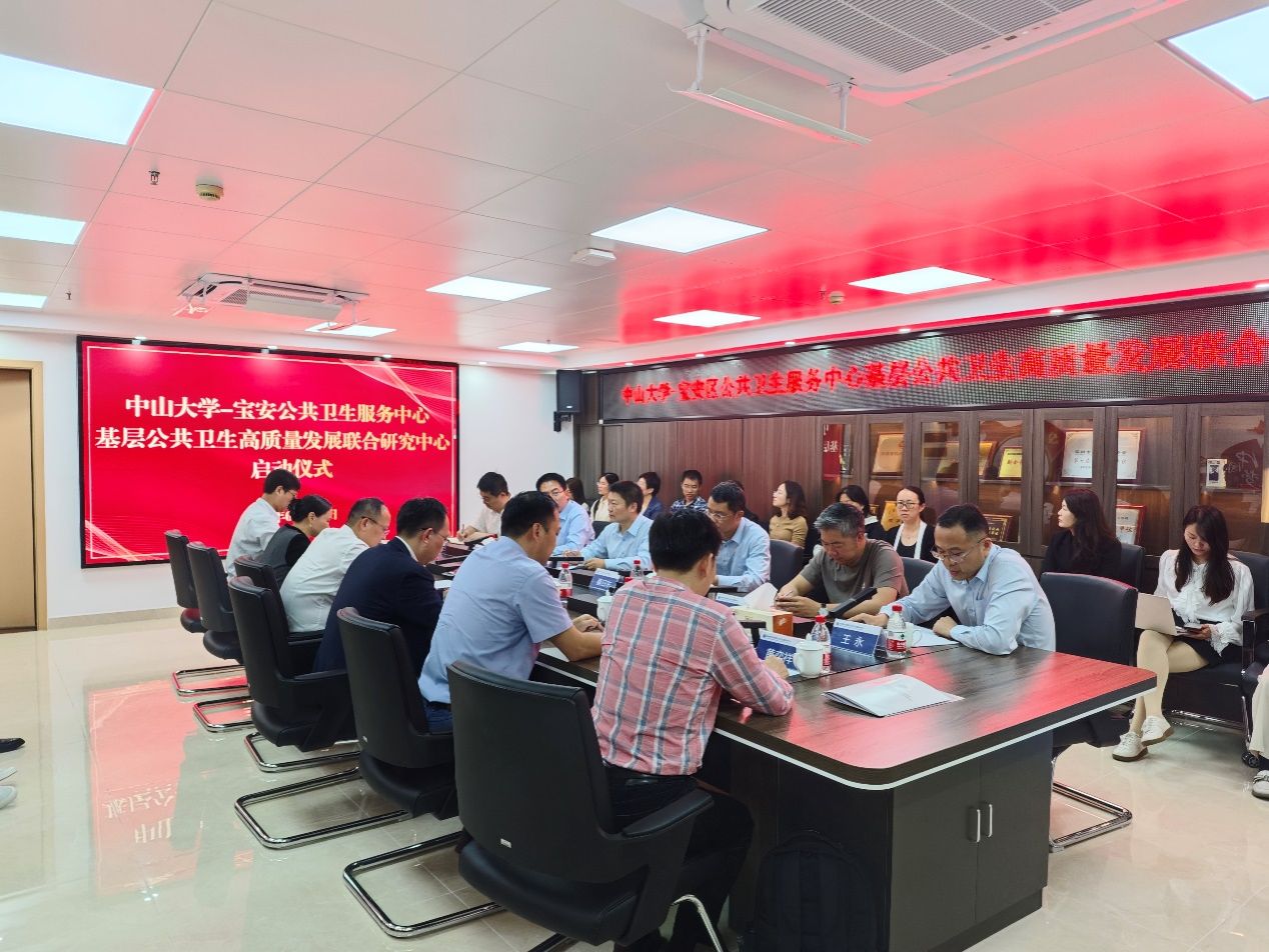2月22日下午,中山大學寶安公共衛(wèi)生服務中心基層公共衛(wèi)生高質(zhì)量發(fā)展聯(lián)合會研究中心啟動儀式成功舉行,深圳市寶安區(qū)衛(wèi)健局副局長蔡日東,寶安區(qū)公共衛(wèi)生服務中心主任周小濤,黨委書記、副主任王永,公共衛(wèi)生學院院長夏敏、書記范瑞泉等出席儀式。