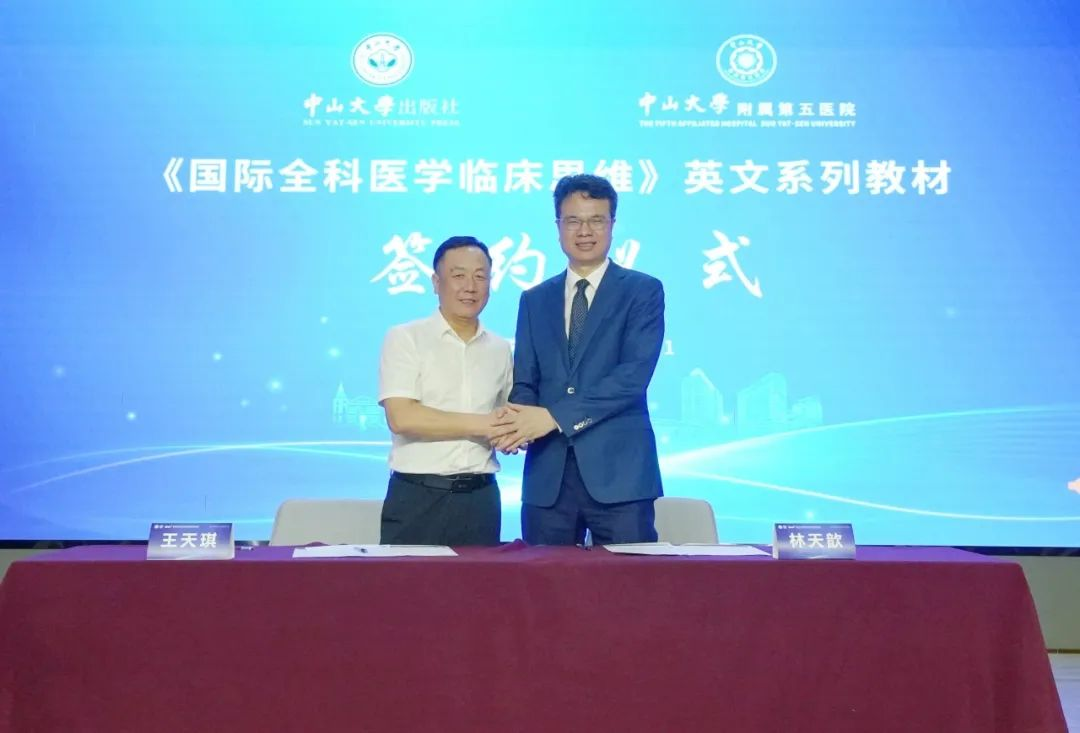 會(huì)上還舉行了中山大學(xué)出版社與中山大學(xué)附屬第五醫(yī)院出版《國(guó)際全科醫(yī)學(xué)臨床思維》英文系列教材簽約儀式。