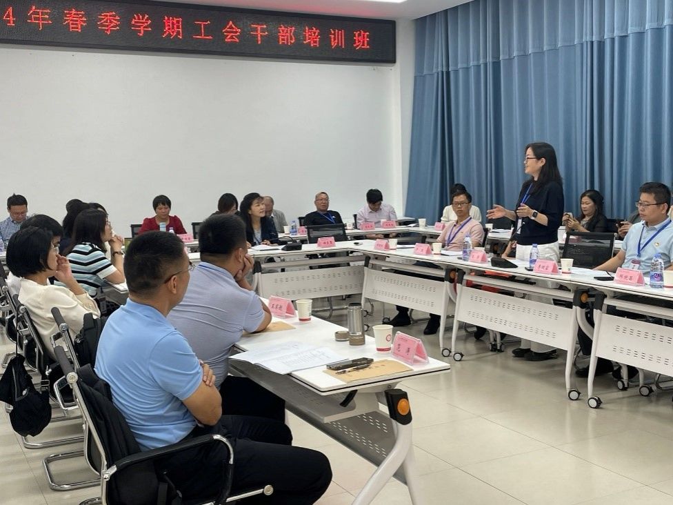 結業儀式上,校黨委副書記、工會主席國亞萍作總結講話。國亞萍副書記充分肯定了培訓班的成效,介紹了近兩年學校工會聚焦教職工最迫切的需求開展的工作與取得的成效,并通報了學校百年校慶活動的安排和部署。她對校院兩級工會干部提出了三點希望:一是加強思想引領,進一步提升政治能力。工會干部要堅持不懈用習近平新時代中國特色社會主義思想凝心鑄魂,不斷提升自身政治能力,同時要加強對教職工的思想政治引領,多做統一思想、凝聚人心、化解矛盾、增進感情、激發動力的工作。二是加強業務學習,進一步增強組織水平。各級工會干部要積極參加培訓和學習,及時掌握各項制度和要求,不斷加強各級工會之間的學習和交流,不斷提高政策和理論水平,不斷提升工作的創新性和實效性,推動工會干部隊伍能力水平提升。三是勇于擔當作為,進一步提升工作成效。工會干部承載著學校和教職工的厚望與信任,肩負著傳遞學校、學院關懷,團結凝聚教職工的使命和職責。要結合學科特色、單位實際和教職工對美好生活的新期待新需求,創新活動形式、深化活動內涵,深入基層,深入群眾,想方設法解決教職工的急難愁盼,不斷增強教職工的幸福感、獲得感、安全感。她希望全體工會干部將此次培訓的學習成果持續轉化為工作動力和實踐能力,以更加飽滿的熱情和更加扎實的作風投入工作,為學校開啟下一個百年華章貢獻更大的力量。