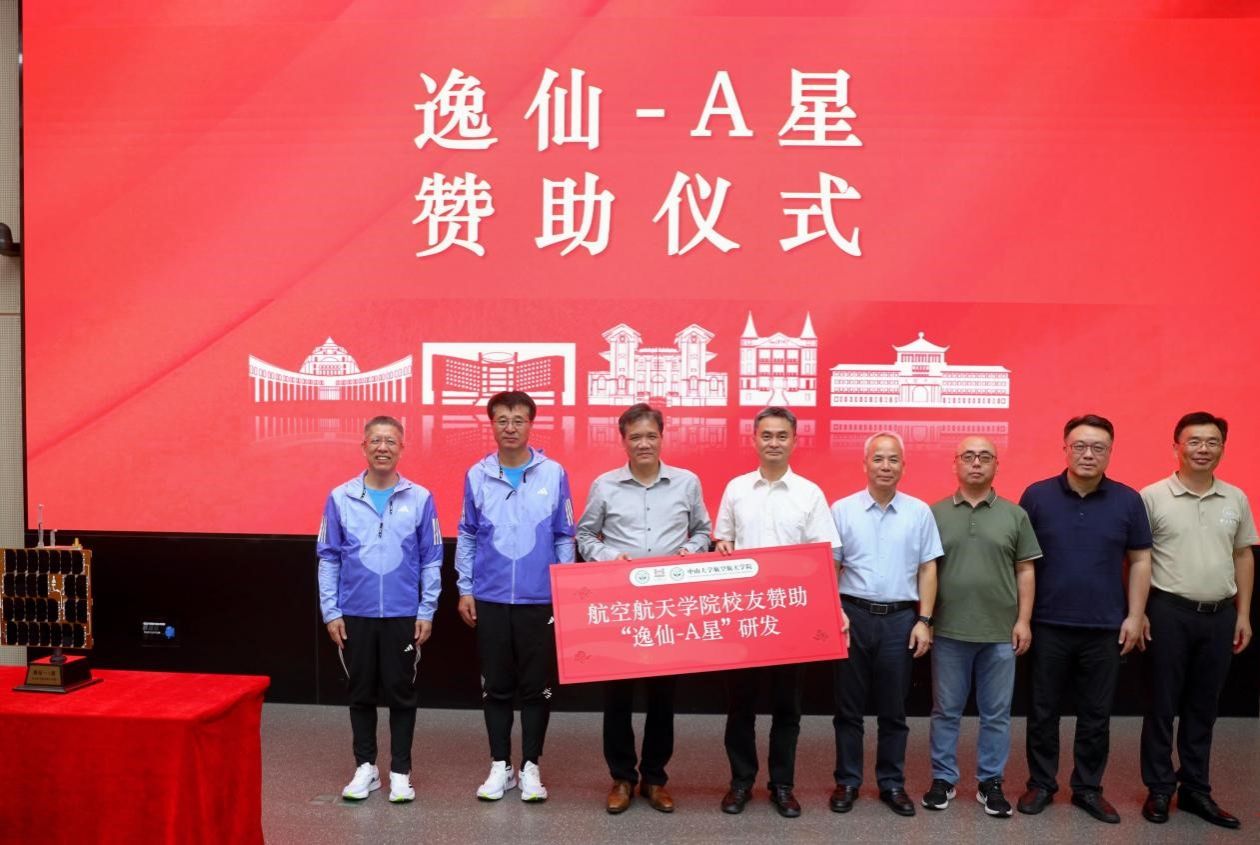 會上舉行逸仙-A星贊助儀式。航空航天學院校友會名譽會長陳光明代表學院校友理事會向吳志剛院長交接了贊助“逸仙-A星”研發的銘牌,并與學校領導、學院領導、校友代表一起合影留念。