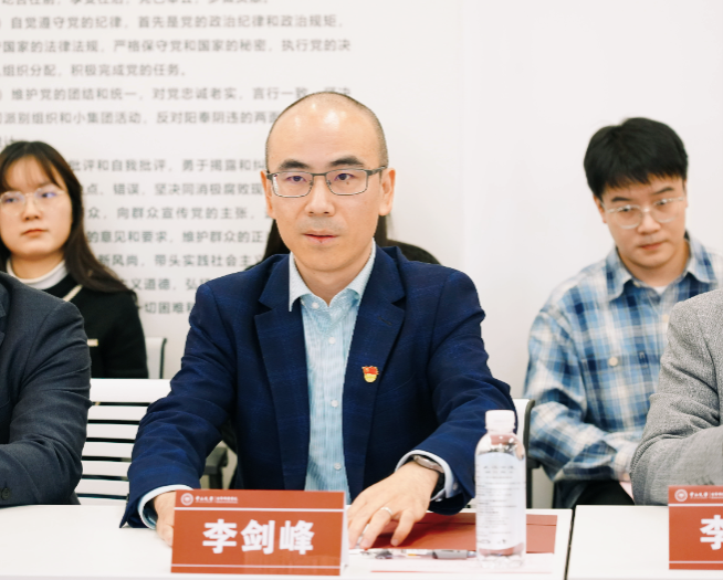 朱孔軍書記向李劍峰同志如期轉為正式黨員表示祝賀,他指出,加入中國共產黨是一份矢志不渝、貫穿終生的莊嚴承諾,希望李劍峰同志今后可以擔當起黨員的責任和義務,牢記共產黨人的初心和使命,以實際行動踐行全心全意為人民服務的宗旨。他表示,希望生命科學學院全體師生黨員,一是要時刻清醒牢記黨員身份,明確責任與使命,凡事秉持“先天下之憂而憂,后天下之樂而樂”的胸懷,堅持人民利益至上,無私奉獻,先人后己,主動作為;二是要強化支部堡壘作用,順應時代浪潮積極求新求變,探索人才培養的創新之路,推動學科交叉融合,主動探尋產學研協同發展的創新路徑,將黨支部打造成為能強力推進教育、科技、人才“三位一體”深度協同融合的堅固陣地,堅持為黨育人、為國育才;三是要聚焦國家重大戰略和粵港澳大灣區發展需要,找準黨建和業務雙融雙促的結合點、切入點、著力點,錨定高峰學科建設和國家重大戰略兩個主戰場,把黨的政治優勢、組織優勢充分發揮出來,為加快建設中國特色世界一流學科,為建設教育強國、推進中國式現代化作出更大貢獻。